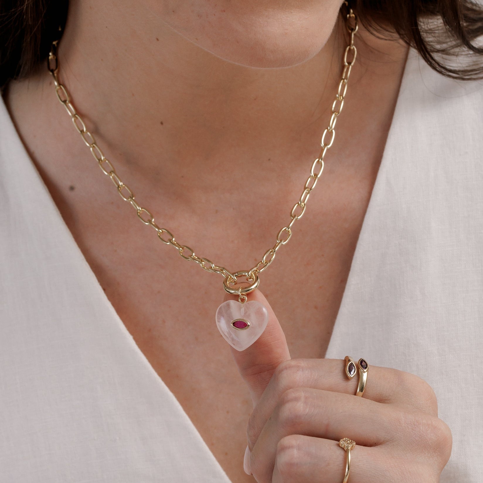 - Nuestros clásicos cuarzos en versión corazón. Un collar diseñado para llenar tus días de energía y buenos deseos! Conoce el significado de nuestros cuarzos en nuestra sección de Dijes.